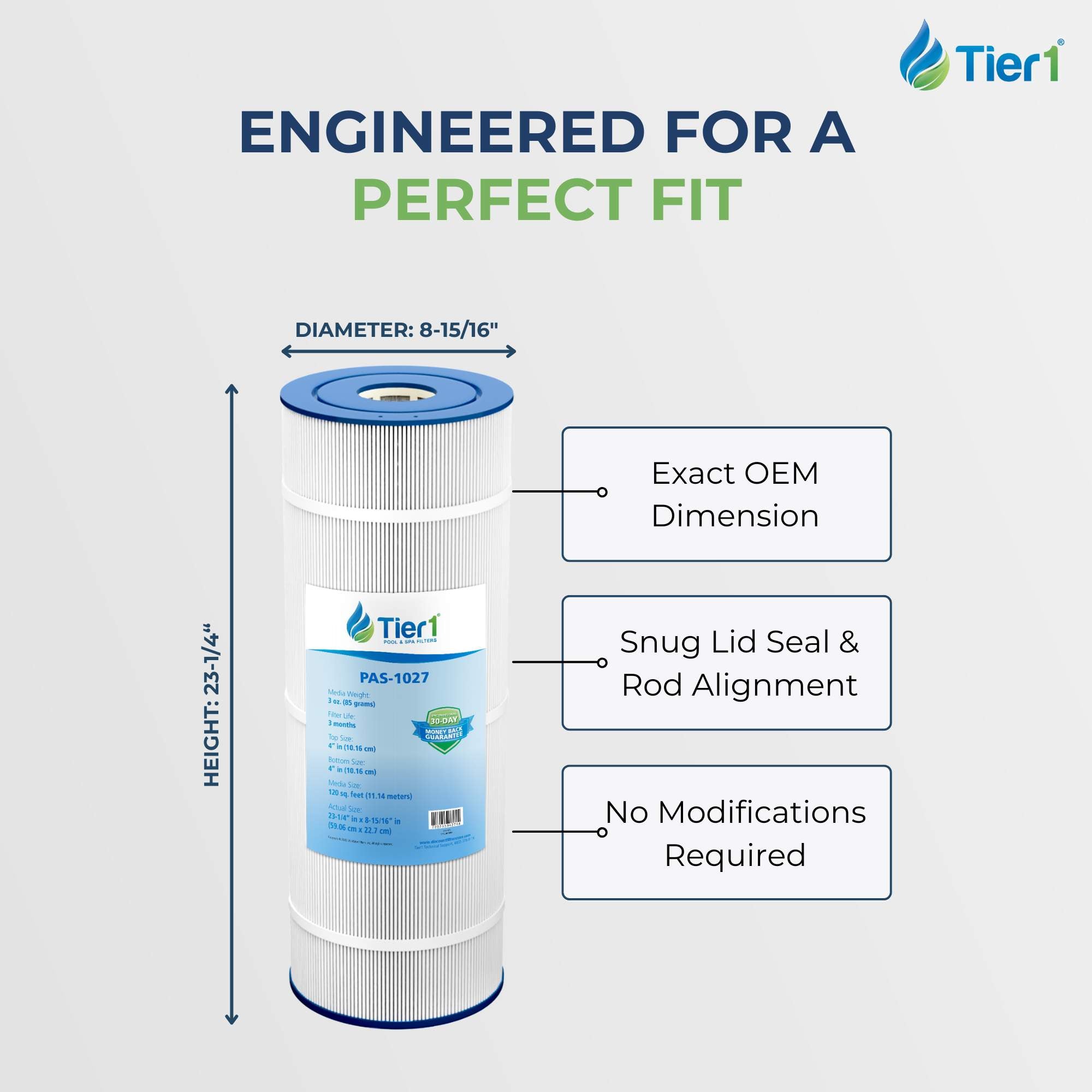 Tier1 PAS-1027 Replacement Pool and Spa Filter 4 ounce media fits the Hayward Star-Clear Plus C-1200. Tier1 Pool and Spa filters will protect your investment engineered to outperform the competition and exceed your expectations. Features high durability flat bonded filter media that maintains strength even when loaded with sediment. Flat bonded media provides effective filtration across 100% of the media surface compared to point bond media where up to 25% of the filter surface is blocked by the fiber bonds. Supported by a high strength, high flow core to support industry leading flow rates the Tier1 Pool and Spa filters will clean your water faster and more efficiently with less wear and tear on your pump. Dive in with Tier1, the water's great!