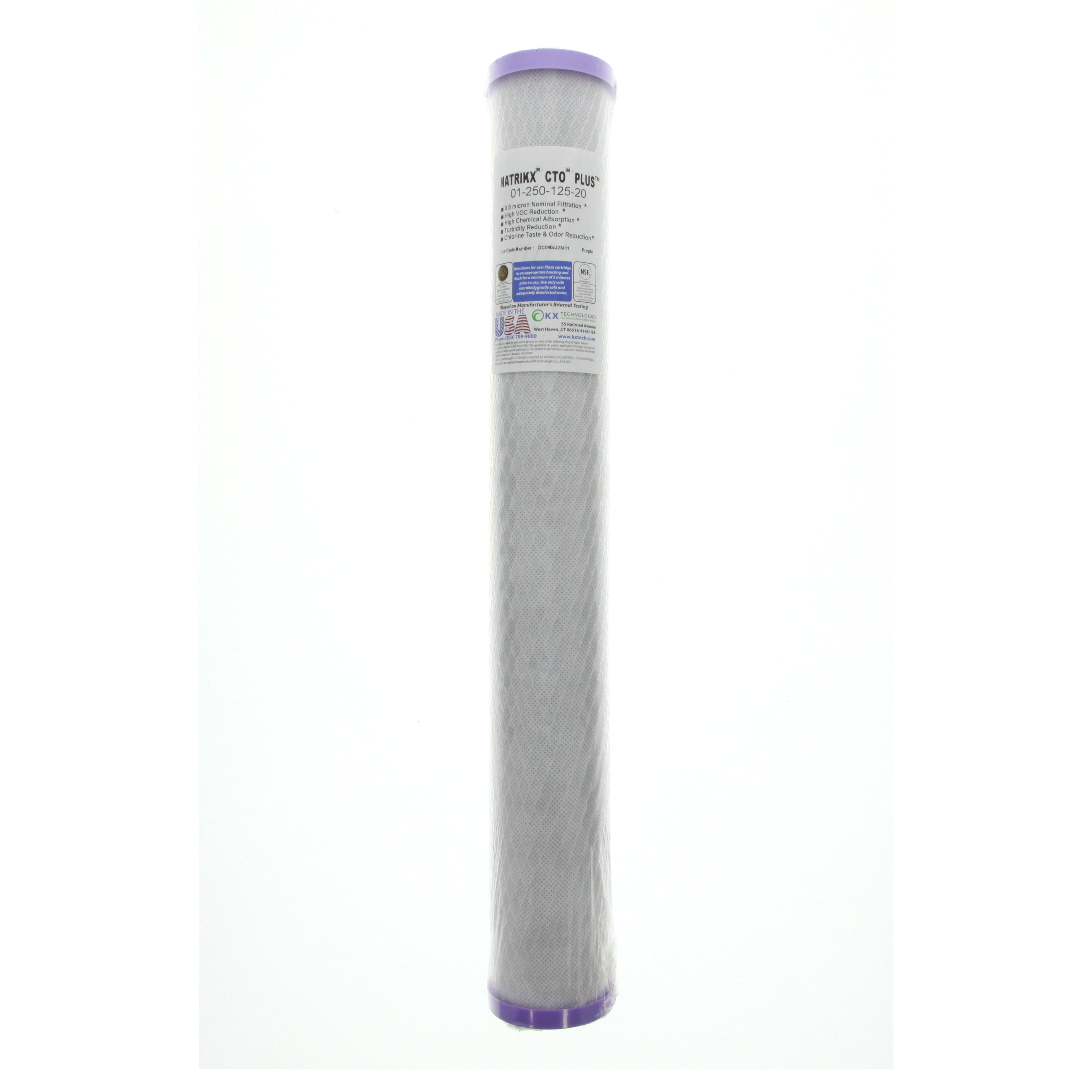 The KX-MATRIKX-1-20 whole house replacement filter cartridge offers 0.6 micron nominal filtration with extended life as a fine sediment and silt control filter, comprehensive removal of chlorine taste and odor and chemicals that contribute to taste and odor, and high VOC reduction capacity. Ideal for use in residential and commercial water purification systems, and food service applications where a high flow rate is desired.
